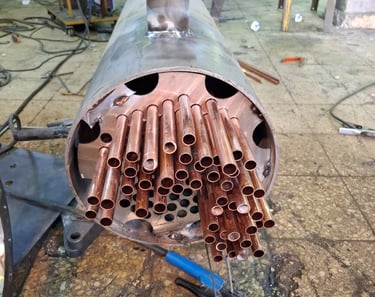 Construction: Heavy-duty carbon steel shell with copper/stainless steel tube bundles