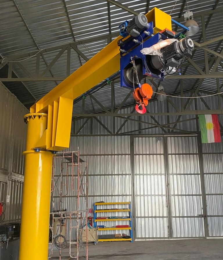 The pillar-mounted jib crane is designed for reliable and efficient lifting operations in workshops, warehouses, factories, and maintenance bays. Built with a robust vertical column and a rotating horizontal jib arm, it offers flexible material handling within a circular working area.