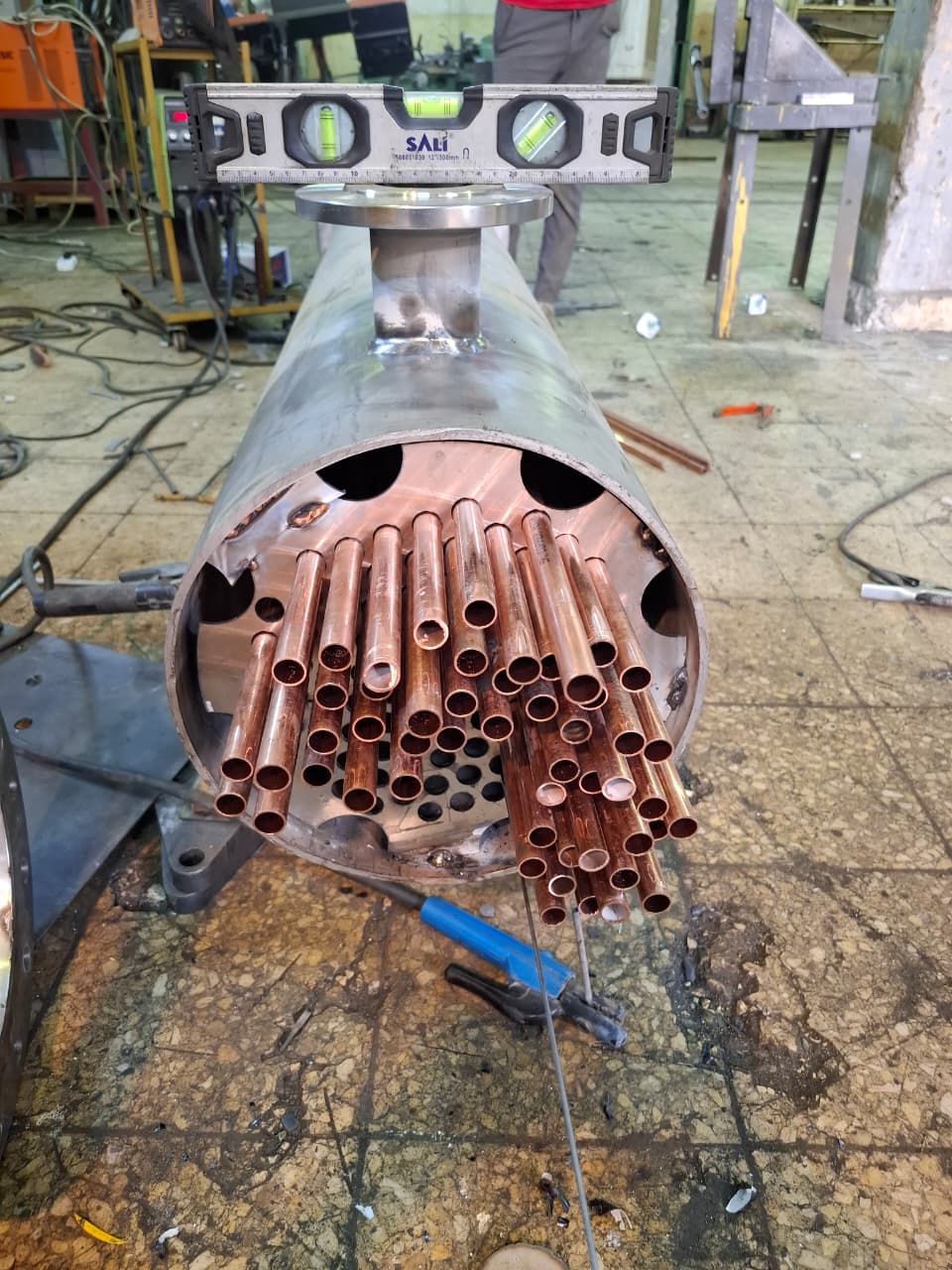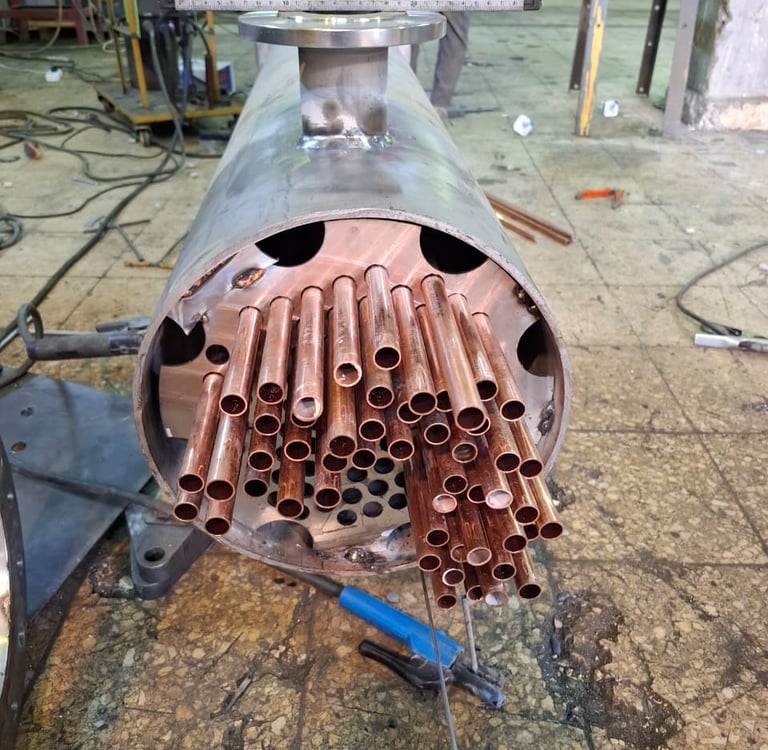 Construction: Heavy-duty carbon steel shell with copper/stainless steel tube bundles